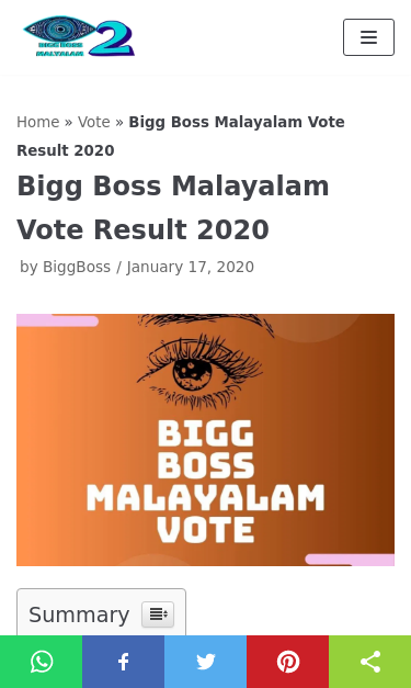 Bigg Boss Malayalam Vote Result - Check out the latest nominations 2020, voting counts today, elimination results.