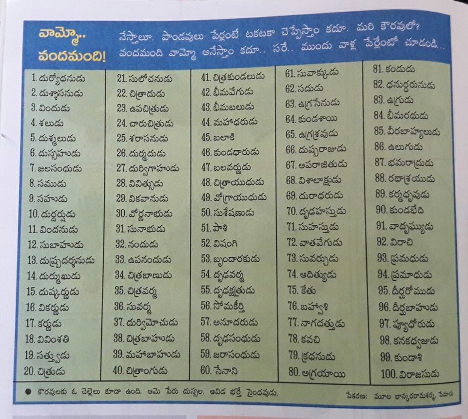 Kauravas Names In Telugu : The purpose of this list is to help telugu parents in choosing names for newborn baby.
